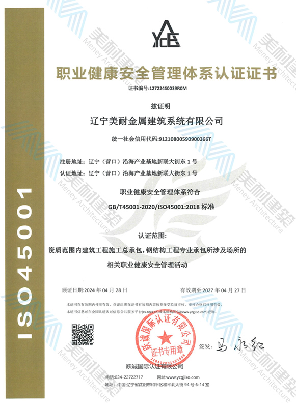 遼寧美耐金屬建筑系統(tǒng)有限公司位于遼寧(營口)沿海產(chǎn)業(yè)基地,專注于預制金屬建筑系統(tǒng)領域,是一家集工業(yè)建筑設計、制作、施工及相關的技術(shù)咨詢與服務為一體的綜合性服務企業(yè)。作為國家鋼結(jié)構(gòu)協(xié)會會員、中國建筑金屬結(jié)構(gòu)協(xié)會會員單位與國家高新技術(shù)企業(yè),美耐建筑集建筑工程施工總承包、鋼結(jié)構(gòu)工程專業(yè)承包等多種資質(zhì)于一身,并擁有22項鋼結(jié)構(gòu)建筑領域?qū)@?項軟件著作權(quán)。